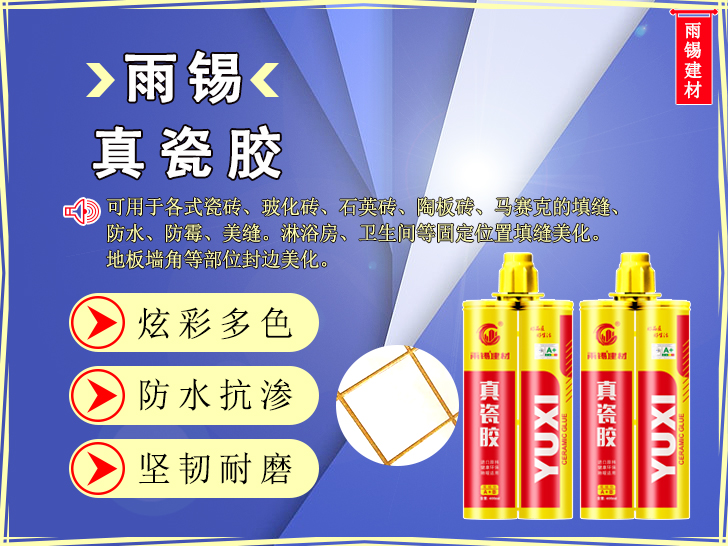 雨錫真瓷膠是一款采用納米柔性配方制作而成的雙組份美縫劑,產品炫彩多色,光亮如瓷,堅硬有韌性,每個色彩均融入當下時尚元素,彰顯奢華氣質,適合亮光系列的瓷磚美縫。產品采用好原料,固化后內部分子呈三維交聯結構。強度更高、更硬、更耐磨、耐高溫抗低溫的同時質地更均勻。產品可以不用填縫打底,可直接施工,墻地面通用。產品固化后表面可形成比水分子更密集的網狀結構,使其更耐水耐污,防黑防霉。產品可用于地暖美縫。